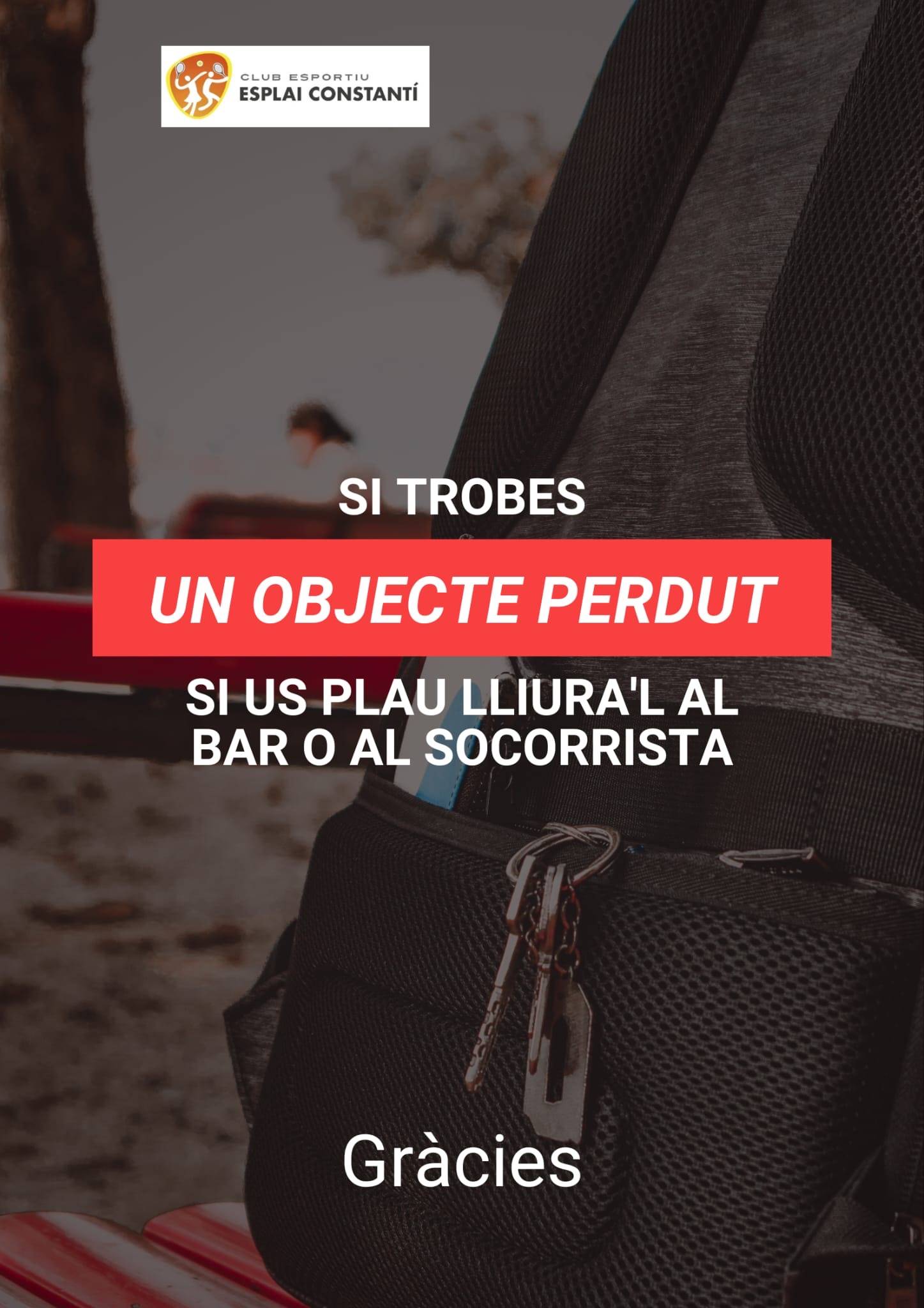 Si us plau, si trobeu alguna pertinença perduda, entregueu-la al personal del Club. Si heu perdut alguna pertinença, podeu enviar un correu electrònic i comprovarem si es troba a objectes perduts.